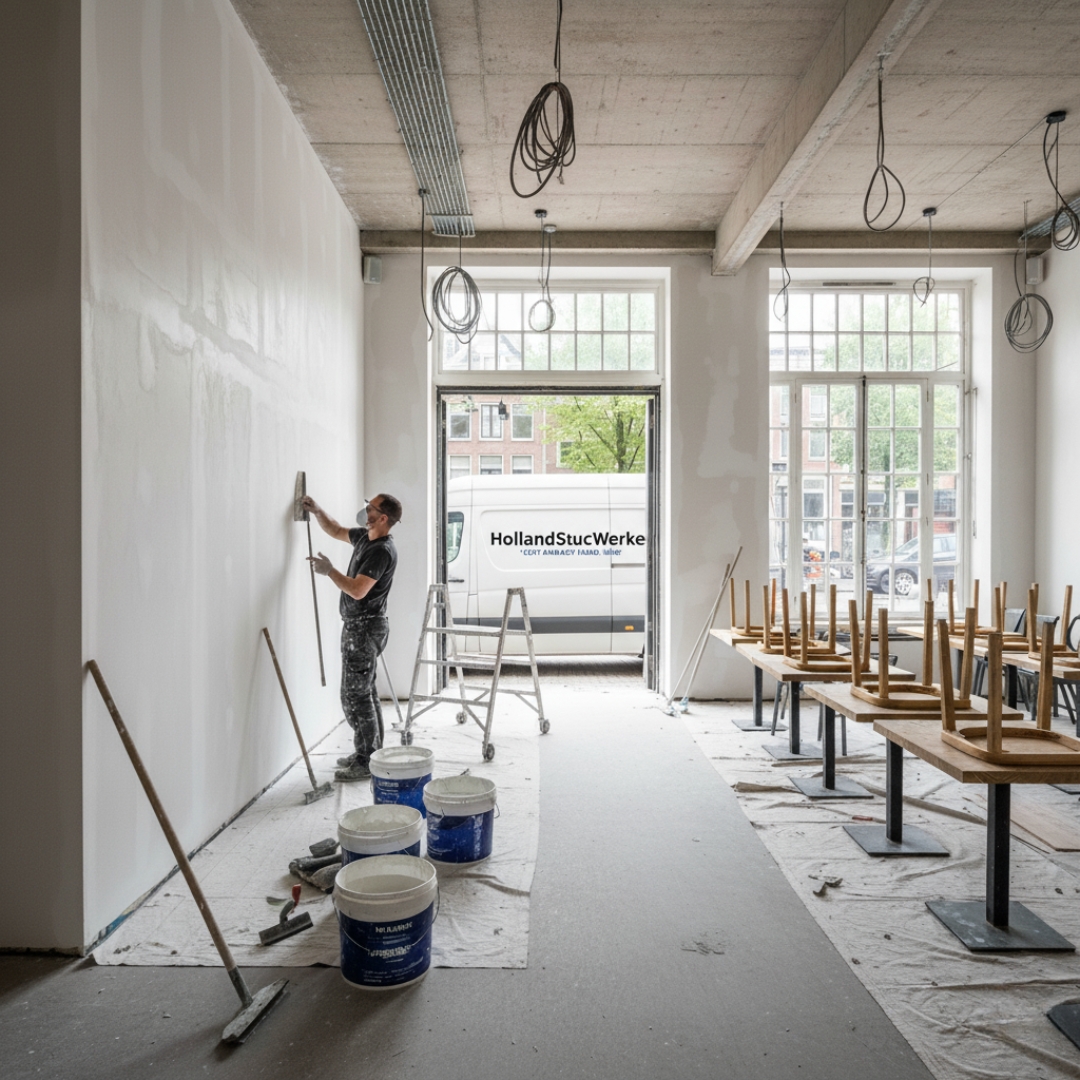 - Kantoren & bedrijfspanden: Van strakke wanden in vergaderzalen tot stootvast stucwerk in gangen en ontvangstruimtes die intensief gebruikt worden.
